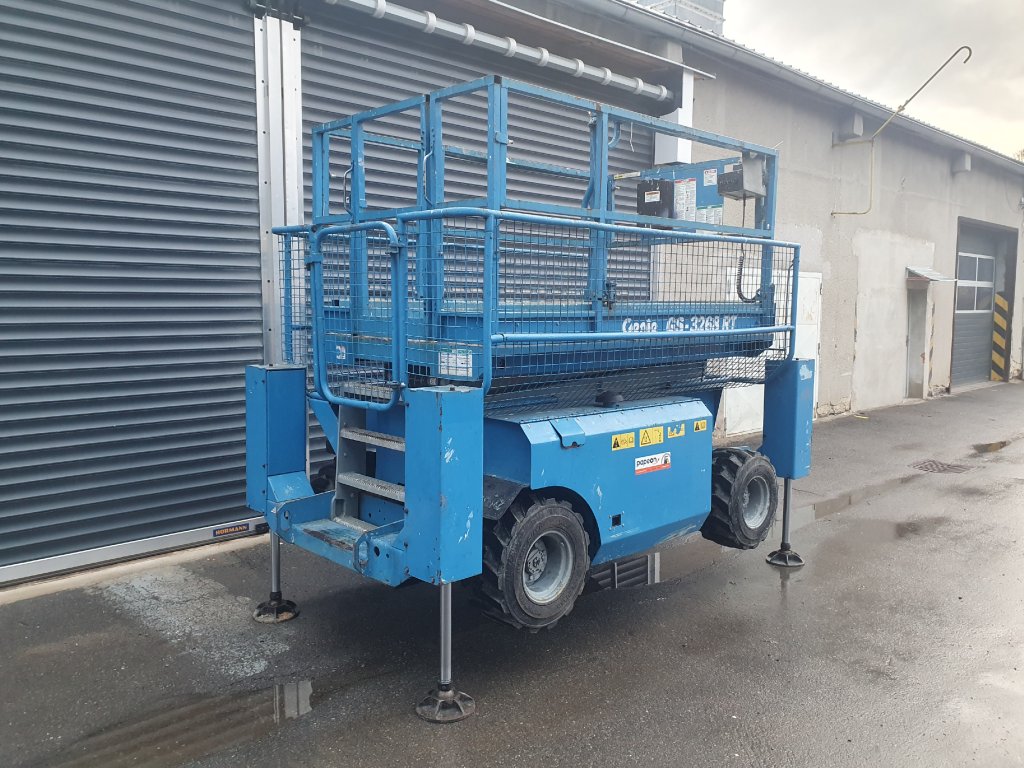 Nabízíme pronájem terénních nůžkových pracovních - montážních plošin.